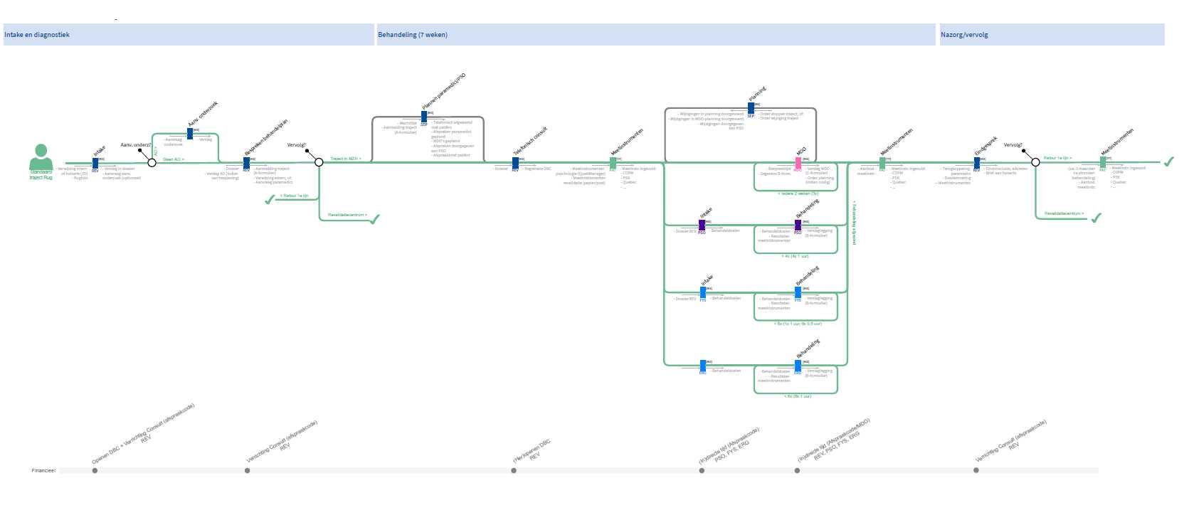 Kotterink zit veel om tafel met leveranciers, huisartsen, verpleegkundigen en soms ook patiënten en merkt dat het werkt om niet met ingewikkelde schema’s op de proppen te komen. “Als je bij elkaar zit om duidelijk te krijgen wat je met elkaar doet, is dat ook een soort reflectiemoment. Dan wordt het iedereen duidelijk wat zo’n proces concreet oplevert. Je doet elkaar een groot plezier door eerst het hele proces in kaart te brengen met alle rollen erbij. Dat blijft voor iedereen overzichtelijk. Je refereert aan alle stappen. De ene keer voer je het hele proces echt uit, de andere keer praat je met elkaar over de volgorde en weer een andere keer zet je een werkinstructie in elkaar. Met deze proces-plattegrond heb ik een visualisatiemethode die mensen makkelijk begrijpen. Ik heb er weinig tekst en uitleg bij nodig en ik krijg ook weinig vragen terug. Men begrijpt me sneller. Daar zit mijn winst.”
